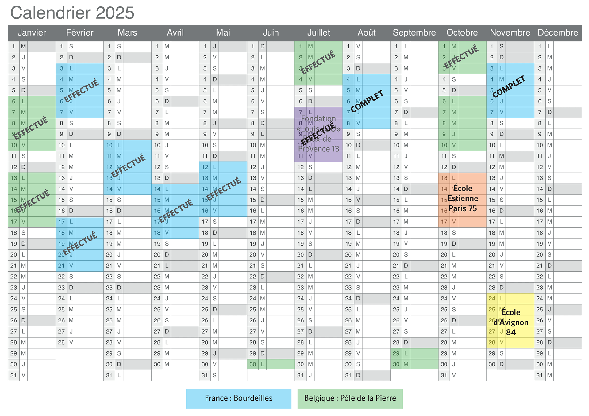 DATES ET INSCRIPTIONS 2025